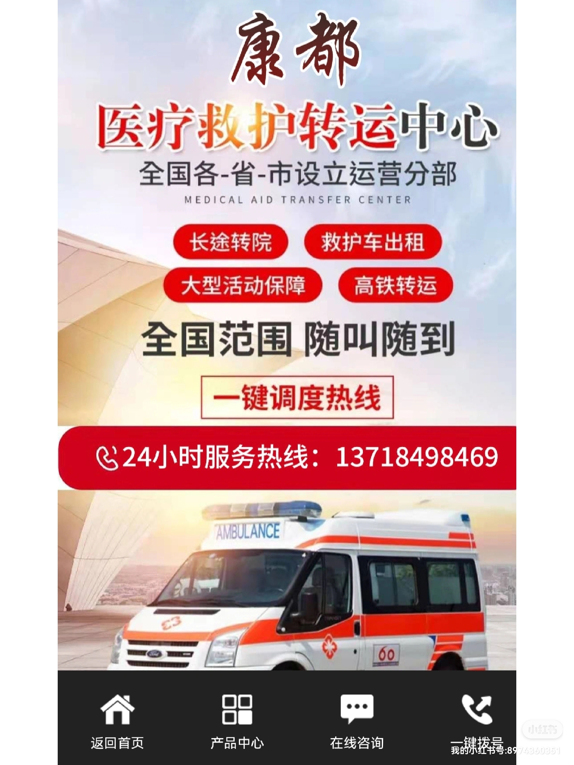 金沙县120救护车长途转运跟大家聊聊如何办理救护车牌照:1.根据许可证税第七条的规定:卫生机关和公共组织设立的医院、具有固定特殊设备和特殊标志的交通工具,如救护车、诊疗车、洒水车、水肥车、垃圾车等,免征许可证税/燃料税;前一项免征许可证税的交通工具,使用前应办理免征手续!2.申请人应准备件/申请机关单位:一、申请设立。(一)民营救护车机构设立许可申请表。(二)设置计画书。下列事项应按规定说明:1.业